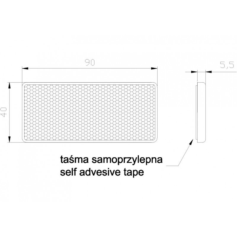 Catadioptru dreptunghiular cu banda adiziva, culori rosu galben si alb