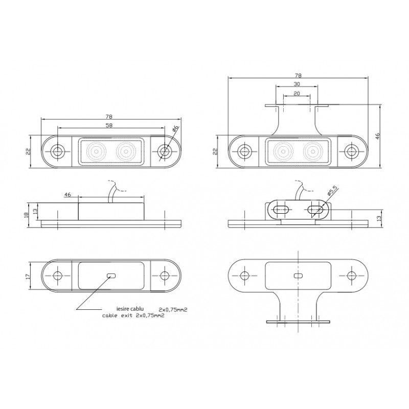 - Lumina Clearance-ul: 12V = 0,02 / 0,25 W / 0,02 = 24V / 0.5W