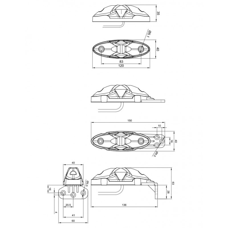 Lampa gabarit cu 2 funcți si cu lumina LED - consum redus de energie.