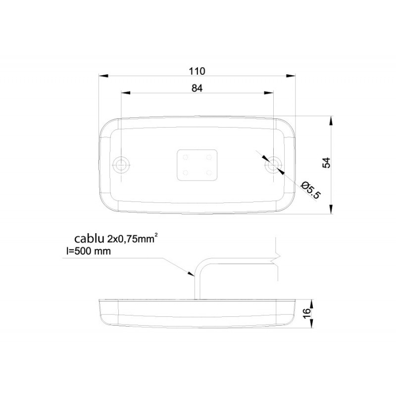 - Lumina lampa gabarit roșu: 12V = 0,03A / 0,4W / 24V = 0,03A / de 0,8 W