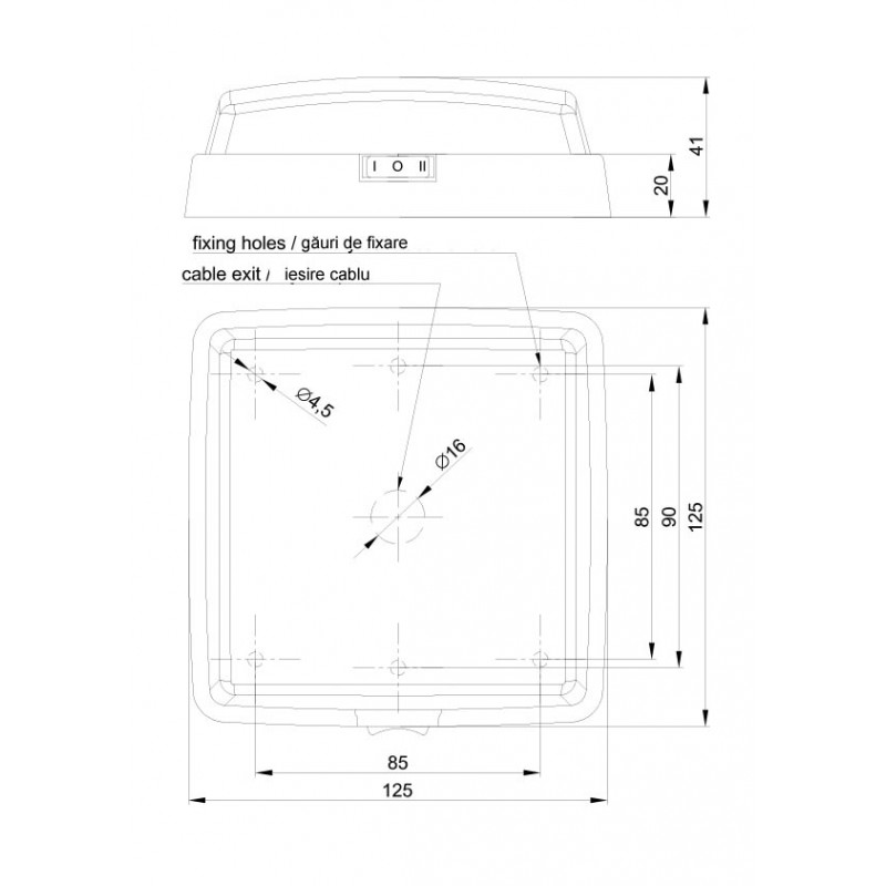 Lampa plafoniera FTP-131, lampa iluminat interior de 12V sau 24V cu buton ( fara becuri la versiunea standard).