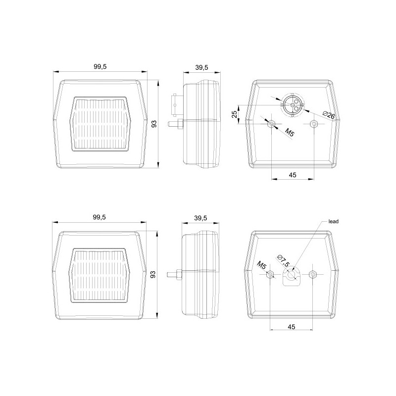 - Lampa pozitie fata: 12V / 24V = 1,6W / 3,2W