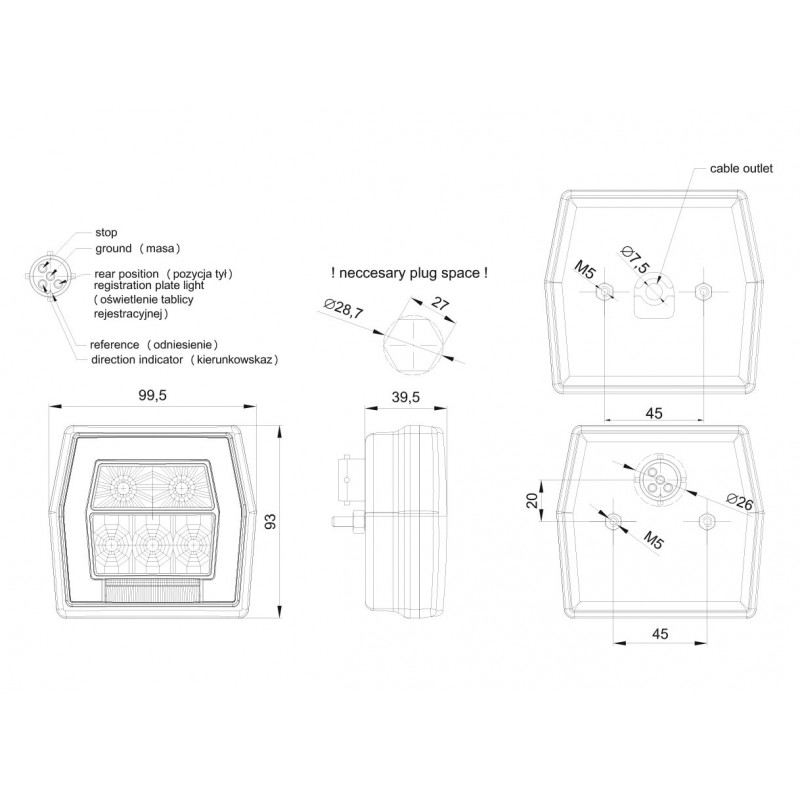 - Lumina de poziție spate + lampa iluminat numar 12V / 24V = 1,65W / 3,3W
