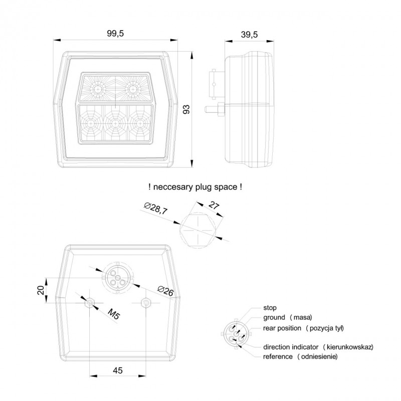 - Lumina de poziție spate 12V / 24V = 0,75W / 1,5W